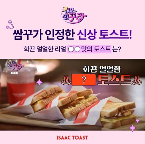 <경품>이삭토스트 금액권 5천원 권 (10명) View this post on Instagram A post shared by 이삭토스트 (@isaactoast.official)
