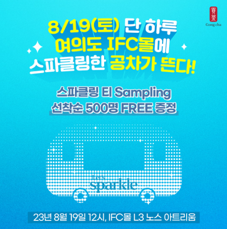 ⭐2023년 8월 19일 토요일 낮 12시!여의도 IFC몰에 스파클링한 공차가 뜹니다😍 View this post on Instagram A post shared by 공차코리아 / Gong cha Korea Official (@gongcha.official)