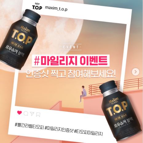 T.O.P 마일리지 이벤트를인증하면 추첨을 통해 T.O.P 로우슈거 블랙 캔 2박스를 받아볼 수 있어요❗ View this post on Instagram A post shared by 맥심티오피 Maxim T.O.P (@maxim_t.o.p)