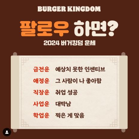 #EVENT 팔로우 할 지어다 킹덕으로 살 지어다운을 다 가져갈 지어다 View this post on Instagram A post shared by 버거킹코리아 공식 인스타그램 (@burgerkingkorea)
