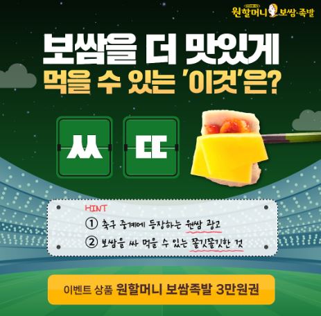 ⚽이벤트 경품 : 모바일 상품권 3만 원권(10명 추첨) View this post on Instagram A post shared by 원할머니 보쌈족발 (@wongrandma)