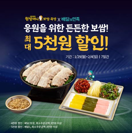 1/29(월)~2/4(일), 단 7일간배민에서 최대 5천원 할인! View this post on Instagram A post shared by 원할머니 보쌈족발 (@wongrandma)