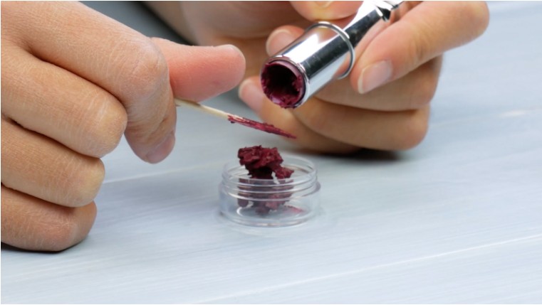 일단 이쑤시개 등을 이용해 립스틱을 파 냅니다. 작은 용기 안에 이를 덜고 코코넛 오일을 섞어 부드럽게 만듭니다. 립 브러시를 이용해 발라줍니다. 이젠 코코넛 오일이 입술까지 보호해 준답니다.