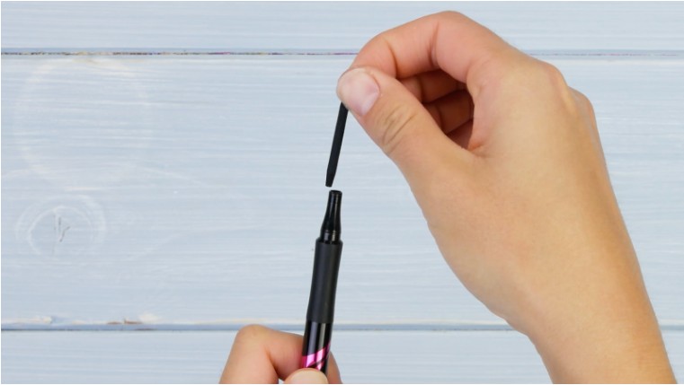 걱정 마세요! 아이라이너 심을 완전히 꺼내 뒤집어 다시 꽂습니다. 통 안에 있던 반대쪽은 마르지 않아서 아이라인을 쓱쓱 – 쉽게 그릴 수 있답니다!