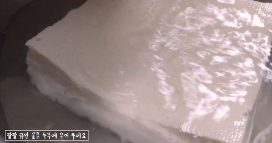 두부에 끓인 물을 부어주세요