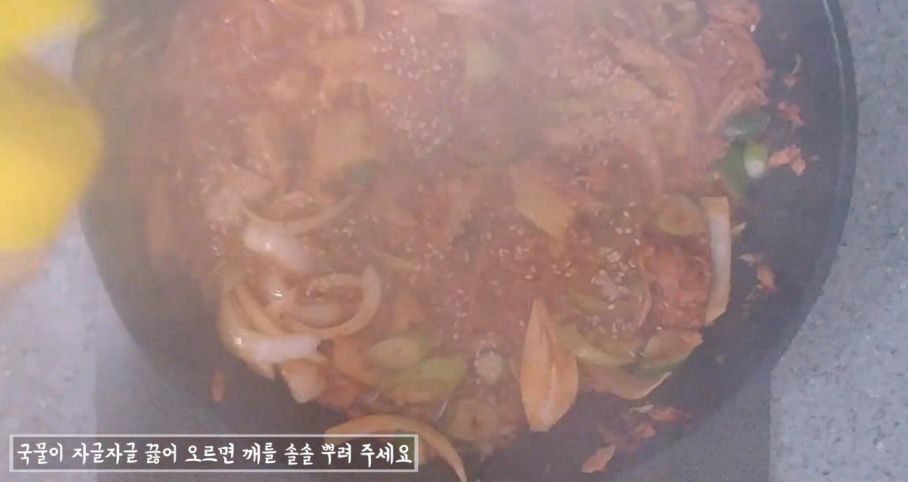 국물이 자작하게 끓으면 깨를 조금 뿌리고 불을 꺼주세요