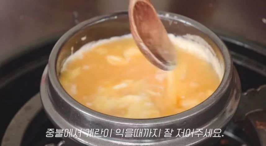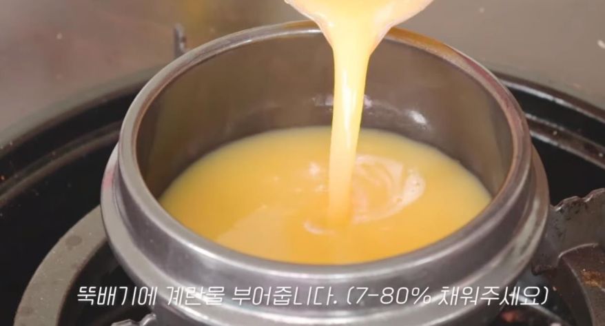 뚝배기에 계란물을 넣어주세요. (7-80%)