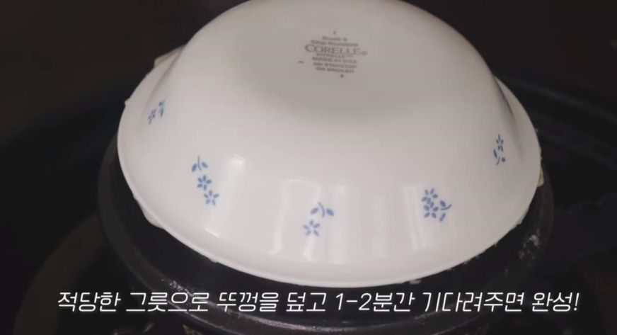 적당한 그릇으로 뚜껑을 덮고 1-2분간만 더 기다려주면 완성