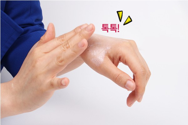 선크림은 외출하기 30분 전에는 발라 주어야 한다는 사실 알고 계셨나요? 차단제를 바르고 피부에 스며드는 데까지 약 30분 정도의 시간이 소요되기 때문에 외출하기 전, 충분한 여유를 두고 자외선 차단제를 흡수시켜주는 것이 중요합니다. 아래 사진처럼 톡톡 발라주세요!