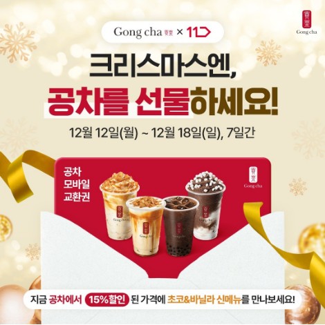 스페셜한 가격으로 만나는 공차 X 11번가 할인 이벤트🥳 View this post on Instagram A post shared by 공차코리아 / Gong cha Korea Official (@gongcha.official)