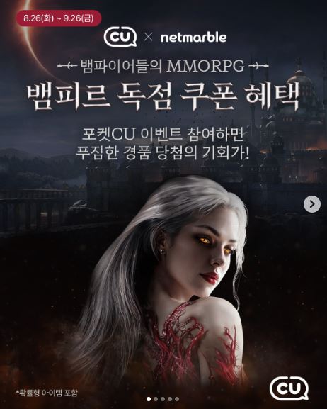 포켓CU 이벤트 참여하고⠀뱀피르 게임 쿠폰 푸짐하게 받아가세요! 🎮⚔️ View this post on Instagram A post shared by CU (@cu_official)