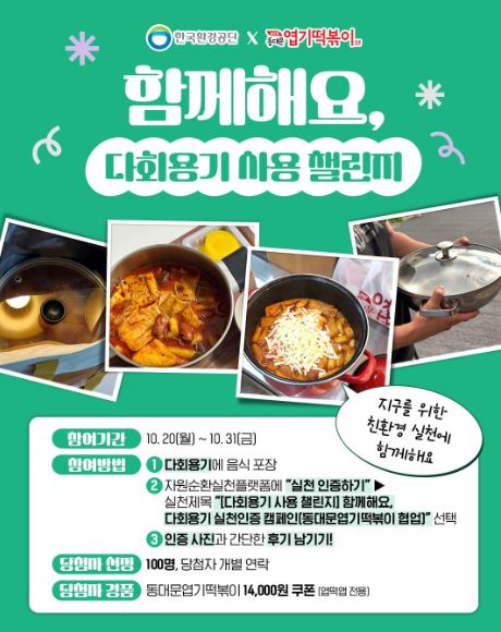 #EVENT한국환경공단 X 동대문엽기떡볶이 View this post on Instagram A post shared by 엽기떡볶이 공식 인스타그램 (@yupdduk_official)
