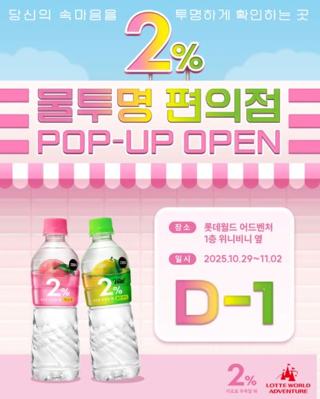 단 5일 간, 어디에서도 볼 수 없는 물투명 2% 편의점만의물투명한 사랑 테스트와 포토존 체험하고, 한정판 굿즈도 받아가세요! 🎁 View this post on Instagram A post shared by 롯데칠성음료 (@lottechilsung)